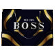 Celebrate the power and independence of women with this chic black and gold gift bag. Designed to make a statement, the bag features the empowering message "She Is Her Own Boss" in elegant white font. Perfect for birthdays, graduations, or just because, this large gift bag is ideal for holding all kinds of special surprises. Give a gift that speaks volumes about confidence and leadership with this standout accessory.