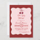 Elegant and classy Invitations to a Bridal Shower or Bachelorette Party with the phrase "KISS THE MISS GOODBYE."Miss in script letters on red lips.