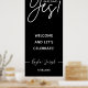Simple calligraphic Engagement Party sign with 'She said Yes!' lettering. Different background colour options available: Black, Navy blue, Burgundy, Emerald and Rust. Names and Date of event are editable.