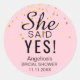 'SHE SAID YES' Bridal Shower Blush Pink Rose Gold Classic Round Sticker