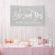 Welcome your guest to your bridal shower with this silver glitter ombre gradient on editable grey. She said yes white quote calligraphy typography.