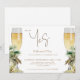 Champagne Bottles. Gold text. Invitation. She Said Yes. Watercolor. Tropical.