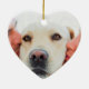 Engagement announcement white and red cute heart custom photo text Christmas Ceramic Ornament.