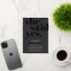 Modern and minimalist engagement party invitations feature chic black and white styling with "she said yes" in oversized rose gold foil retro lettering. Personalise with your engagement celebration details beneath. Invitations reverse to a pattern of colourful stars.