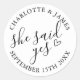 She Said Yes Engagement Party Black And White Classic Round Sticker