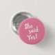 She Said Yes Engagement Pink 3 Cm Round Badge