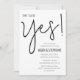 Minimal white engagement party invitation with the text "she said yes" with bold trendy typography. Personalise it with any text needed including the couple's names, location, date and time, and RSVP information. Change the font, colours, and position of the text, or add a backing colour by clicking the button to edit the design.