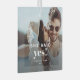 Minimalist Christmas ornament with bold "she said yes!" letters to commemorate your engagement