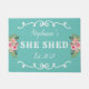 She Shed Floral Year Established Cute Teal Doormat. Personalise this custom design with your own name.