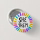 SHE / THEM Pronouns Rainbow Handlettered Pride 3 Cm Round Badge