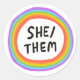 SHE / THEM Pronouns Rainbow Handlettering Set of Classic Round Sticker