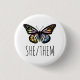 SHE/THEM Pronouns Watercolor Butterfly 3 Cm Round Badge