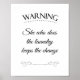 This charming laundry room art poster features the phrase "WARNING She who does the laundry keeps the change" in a combination of black fonts, and is accented with gray swirly elements. Sounds fair to me!