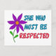 Remove all doubt that you're a woman who's in touch with her power with this design of a deceptively fragile flower and the words "She who must be respected." Great design to build confidence and strength in young girls and women.