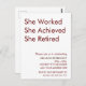 She Worked She Achieved She Retired Retirement Fun Postcard