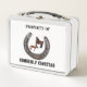 This is a standard metal lunchbox that appears to work just fine. We designed this box ourselves with an uploaded photo and custom text on the front and back. It looks absolutely beautiful except the front of the lunchbox is not centered like it shows in the photo. The print borders don't align with the inset flat part of the box where the preview photo online showed it perfectly centered in there. The back looks nice and centered though.