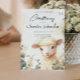 Celebrate the special occasion of your son's christening with our delightful invitation cards, featuring an endearing illustration of a sheep surrounded by delicate green flowers. The charming sheep adds a touch of whimsy, while the soft green floral accents evoke a sense of serenity and nature's beauty. The elegant lettering enhances the overall design, adding a touch of sophistication and grace. Each card is thoughtfully crafted to make a memorable first impression on your guests. Ideal for announcing this significant milestone, our christening invitations beautifully combine playful charm with refined elegance in a harmonious design.