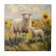 Sheep and Lamb Sunflower Field Ceramic Tile