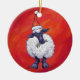 Sheep Christmas On Red Ceramic Tree Decoration