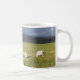 A photographic design of Welsh mountain sheep grazing on the sunny hillside just as the rain is about to start.