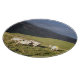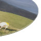 A photographic design of Welsh mountain sheep grazing on the sunny hillside just as the rain is about to start.