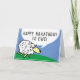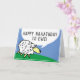 Funny sheep birthday card. Design has a cartoon sheep with the pun Happy Baaathday, replacing Happy Birthday. Cartoon illustration of a sheep in a green field against a blue sky. Funny Birthday Card for a farmer or shepherd perhaps.