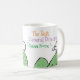 Mug for a Funeral Director. Funny cartoon of a sheep on the top of a hill. The sheep says "Best Baaa None". Design repeats on both sides.