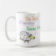 Mug for the best Mummy. Funny cartoon of a sheep on the top of a hill. The sheep says "Best Mummy Baaa None". Design repeats on both sides