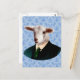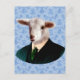 Express yourself with this Colourful "Anthropomorphic Sheep Postcard". Sheep head with human body in suits with blue background.