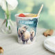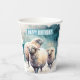 Cute birthday party paper cups featuring sheep under the snow.