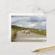 Postcard of some sheep on a tarmac road in the countryside of Ireland with a fading bar and the text: 'Ireland'.