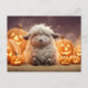 Sheep sleeping among Halloween pumpkins illustrati Holiday Postcard