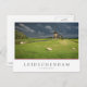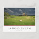 Photo postcard of some sheep in the green grass in front of three windmills under a dark sky with rain clouds just before a spring storm in a landscape in Leidschendam, the Netherlands with a white edge and in a white box the text 'Leidschendam, Netherlands'. The box has stripes in red, white and blue, the colors of the dutch flag.