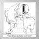 A sheep at typewriter says to another, "I'm writing a vegetarian cook book."
