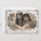 The sheer poinsettia design has translucent framing with Christmas florals on each corner. This makes your holiday photo the centerpiece of a truly beautiful post card. Add your greeting in holiday text for a card that’s uniquely yours!