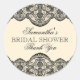 Black lace as a top and bottom border lends a feminine, but alluring impression to this bridal shower sticker. Custom text prints against a simple cream background. Perfect for a lingerie shower! Great as envelope or package seals, use on favours as a quick thank you or customise it to fit your needs. Versatile enough for any occasion. Available with matching products.