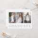 Modern graduation photo party invitation features three of your favourite photos aligned side by side, with "graduate" displayed beneath in elegant light grey lettering. Personalise with your name, school and graduation year on a sheer white stripe overlay. Cards reverse to reveal your graduation party details in matching colours. An elegant and modern choice for 2023 graduates.