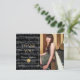 This chic and classic graduation thank you postcard features your photo and a black background with a graduation cap in faux gold glitter and a sheet music. Personalise it for your needs. You can find matching products at my store.