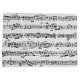 Sheet music pattern on rustic whitewashed wood background.