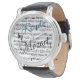 Sheet Music Written by Mozart on a Men's Vintage Black Leather Strap Watch. Gift for the music lover or music loving awesome music teacher that's in your life.