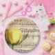 Sheet music and musical notes with a lovely yellow rose laying on top. Perfect gift for the musician in your life.