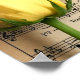 Sheet music and musical notes with a lovely yellow rose laying on top. Perfect gift for the musician in your life.