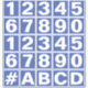 Numbers from 0 to 9. Individual numbers as stickers on a sheet. Blue and white.