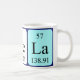 Shela spelled out as S He La (Sulfur Helium Lanthanum) on a mug for the scientist in you.