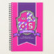 Shelby name meaning shield purple pink planner. Galiant royal crown knights style crest shield monogram letter S art name spiral planner perfect for kids and teens in shades of purple pink, grey and white. Personalise with your own name beginning with S and name meaning or a message or subject for a personalised touch, currently reads Shelby A willow grove. Cheerful, confident and perfect. Unique royal style crest drawing, featuring a unicorn's head, crown, star and initial monogram S letter, graphic art and design by www.mylittleeden.com on zazzle.