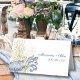 Introduce guests to their seating with this elegant Shell and Gold Coastal Tent Place Card. This artistic design features beautiful watercolor dusty blue shells, sea flowers, and faux gold sea fans. Perfect for an upscale coastal wedding, luxury beach reception, or botanical nautical event, this foldable place card adds unique visual interest to your tablescape. The delicate script clearly displays the couple's names and provides space for the Table No and guest name.