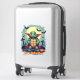 The stick looks amazing. Unfortunately, it would not stick on our suitcase as it was textured. When we found a non-textured (smooth) suitcase, the sticker stuck and looks great. The printing looked awesome.