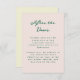 For the epically chic and modern couple, invite guests to a modern and elevated wedding with coastal Italian tennis club vibes in sun-washed pale pink. This reception information enclosure card is sleek and chic with dark green text to direct guests to cocktail hour, the reception and other post-wedding events. This design mixes modern sans serif type with a hand-written style script for an elevated but still casual vibe fit for any chic venue, from beach club to tennis club and beyond.