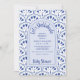 Invite guests to 'shellabrate' your baby shower with this whimsical invitation featuring watercolor abstract scallop sea shells in navy blue. Perfect for beach, nautical and coastal theme celebrations. Art by KL Stock