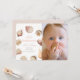 This elegant "Let's Shellebrate" girl's 1st/first birthday photo invitation features a white background with realistic seashells with faux/fake gold splatters. The reverse side features a light brush pink background with wave patterns. Perfect for under the sea birthday parties! Personalise it for your needs. You can find matching products at my store.